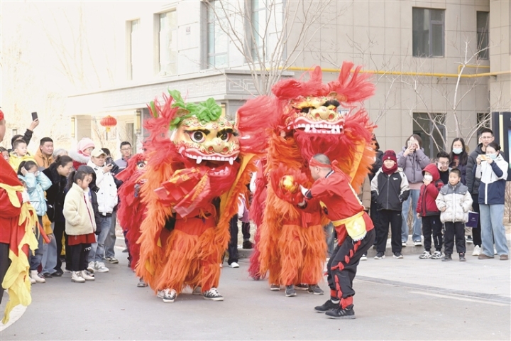 農(nóng)歷正月初七,在錦繡嘉園小區(qū),身著彩色霞帔的醒獅跟隨龍珠和鼓點(diǎn)節(jié)奏搖頭擺尾、翻滾穿梭、盤旋騰躍,為居民送上新春祝福,現(xiàn)場喜氣洋洋,充滿... 【更多】